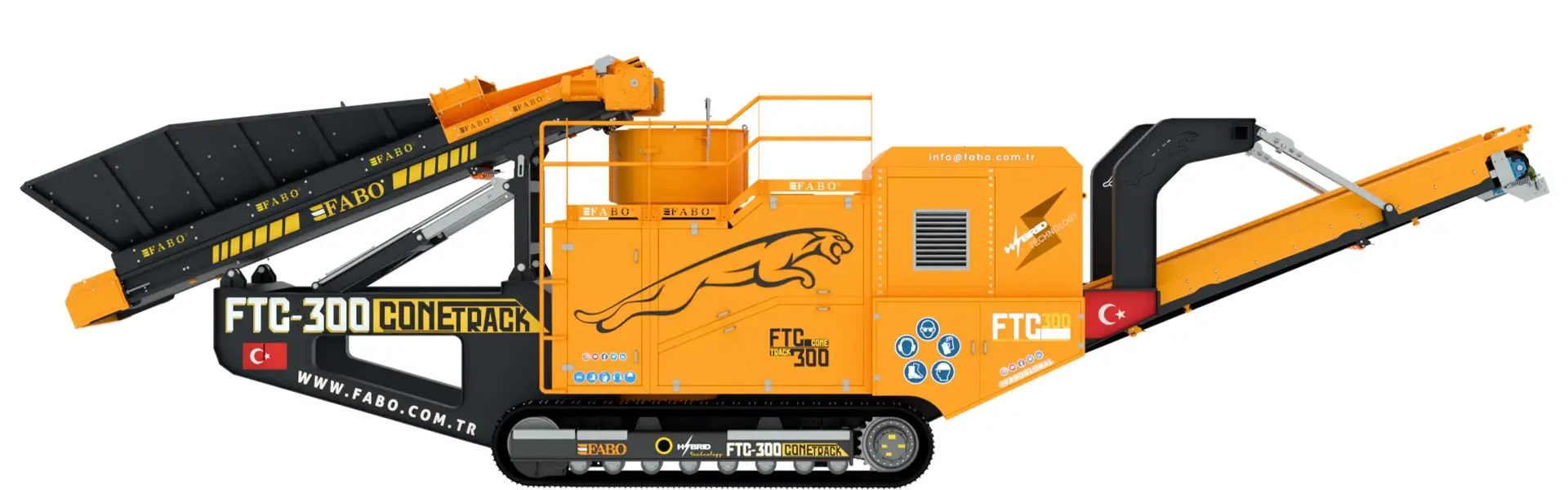They are resistant to challenging terrain conditions. FABO does not neglect the importance of the track system in the crushing plant, carries out various R&D studies to provide its users with maximum compliance with A1 Quality and CE standards.